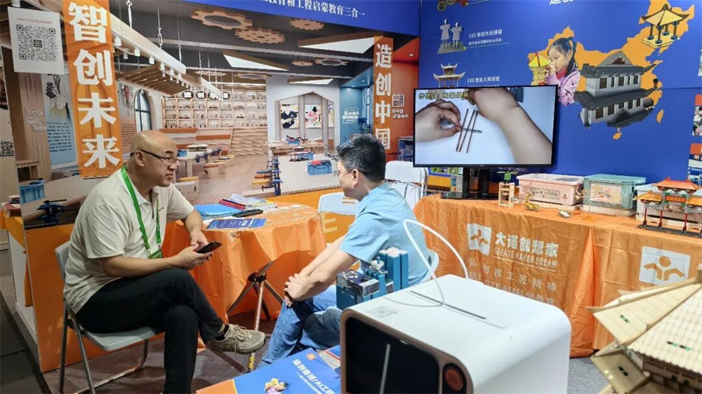 大诺科教研发的“建造大师”课程,以中国传统木构建筑为学习对象,引导学生复原出门、阙、坊、廊、亭、台、楼、塔、桥等经典建筑结构,培养学生的造物技能、工匠精神、工程思维和创新能力,被誉为“科技教育与人文教育完 美融合的经典范例”。通过本届博览会的展台,古色古香、美轮美奂的垂花门、牌坊等“建造大师”作品,赢得了马来西亚、越南、印度尼西亚等国外客户的青睐,将要走出国 门,向世界传播“造创中国,智创未来”。